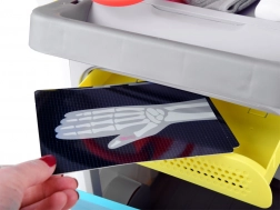 Le chariot médical pour enfants est un set parfaitement équipé pour les petits médecins. Grâce à des fonctions réalistes comme le moniteur ECG/RTG avec son, la toise et les espaces pour les instruments, les enfants se plongent facilement dans le rôle du docteur. La fabrication en plastique de qualité et la manipulation aisée grâce aux roulettes garantissent des heures de jeu sûr et créatif.