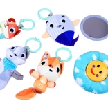 Un ensemble d’animaux suspendus avec hochets, parties crépitantes, miroir sécurisé et soleil musical stimule la vue, l’ouïe et le toucher de l’enfant.