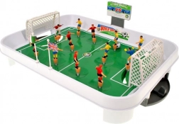 Le coffret comprend 12 joueurs, le plateau de jeu, 2 cages, un ballon, un tableau de score, des mâts et des autocollants de drapeaux — il suffit de déballer et de jouer.