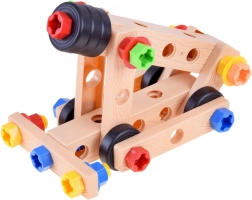Ce jeu de construction créatif est un excellent choix pour les petits ingénieurs. Grâce au système ingénieux de trous dans les lattes en plastique à l’aspect « bois » et aux vis colorées, il est facile d’assembler les pièces et de créer des modèles stables. En jouant, les enfants exercent la coordination œil-main, la dextérité et la patience.