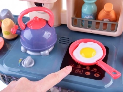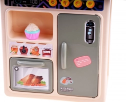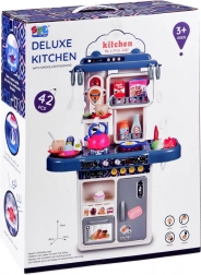 Découvrez une cuisine pour enfants complète, véritable miniature d’une vraie cuisine. L’ensemble comprend jusqu’à 42 pièces et offre un évier à circuit d’eau fermé, une plaque de cuisson avec lumière et sons, un effet vapeur sur le brûleur, un four et un réfrigérateur ouvrants, ainsi qu’une machine à café à capsules. Parfait pour stimuler l’imagination, la motricité fine et la créativité lors des jeux de rôle de petit chef.