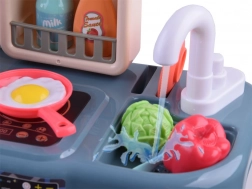 Un évier pratique permet la circulation de l’eau, offrant aux enfants le plaisir de faire la vaisselle sans gaspillage.