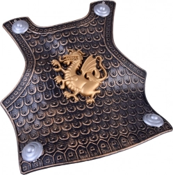 Un relief détaillé et une décoration façon vieil or avec l’emblème du dragon donnent au costume un caractère médiéval saisissant.