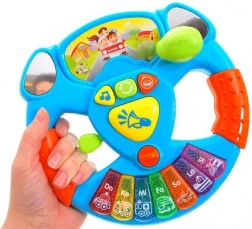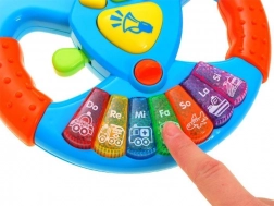 Le volant musical interactif est un compagnon idéal pour les voyages comme pour jouer à la maison. Les enfants se sentent comme de vrais conducteurs grâce aux effets authentiques et à la prise en main simple. Les touches colorées Do–Ré–Mi et d’autres notes déclenchent des mélodies et des sons de moyens de transport, développant ainsi l’ouïe, la coordination et le sens du rythme.