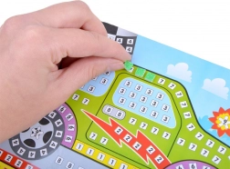 Les enfants collent des pièces en mousse sur les cases numérotées et créent facilement une belle mosaïque de voiture. Idéal pour les premiers projets créatifs.