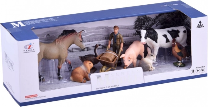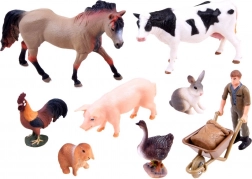 Contenu du coffret : vache, cheval, coq, porcelet, petit lièvre, lapin, oie et fermier avec brouette. Chaque figurine est peinte à la main et prête à créer d’innombrables scènes et histoires.