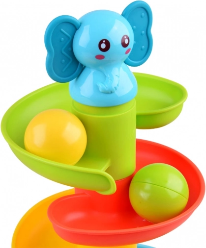 Piste à boules colorée avec petit éléphant – pyramide en spirale pour enfants