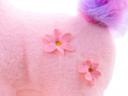 - Yeux brodés, petit cœur sur la joue, fleurs sur le flanc