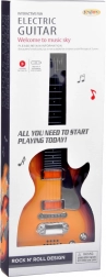 La sangle incluse permet un port confortable et un jeu debout. La guitare est fabriquée en plastique résistant, alimentée par 3× AA (non incluses) et favorise parfaitement le sens du rythme, la motricité et la confiance des jeunes musiciens.
