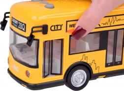 Ce bus urbain finement détaillé, dans un jaune vif, est fabriqué en plastique de haute qualité et prêt pour le jeu quotidien des enfants. Il dispose de boutons sur le toit qui déclenchent l’alarme, une mélodie rythmée et les sons d’ouverture, de démarrage et de marche du moteur. Pendant les effets sonores, une LED blanche clignote à l’intérieur pour plus d’authenticité.