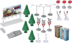 Nous proposons un produit sécurisé, certifié aux normes européennes CE, adapté aux enfants à partir de 4 ans. Avec les dimensions des différentes parties : la locomotive mesure 13 x 3 x 4 cm, les wagons 11,5 x 3 x 3,5 cm, les arbres ont une hauteur de 7,5 cm et la taille moyenne des bâtiments est de 5 x 11 x 5 cm, garantissant diverses possibilités de construction et de jeu.