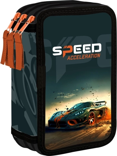 Trousse scolaire à trois étages sans contenu. La trousse contient 40 boucles élastiques pour ranger tous les articles d'écriture et les petites choses nécessaires pour les cours. La trousse a une fermeture éclair solide avec de gros curseurs pour une manipulation facile. Un étage est équipé d'une poche transparente pour l'emploi du temps.