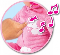 Une légère pression sur le ventre déclenche des rires, babillages, bruits de succion ainsi qu’une mélodie apaisante de berceuse. Idéal pour l’endormissement comme pour le jeu en journée.