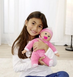 Une conception agréablement douce, des vêtements roses amovibles et une tétine favorisent la motricité fine et le jeu d’imitation des soins.