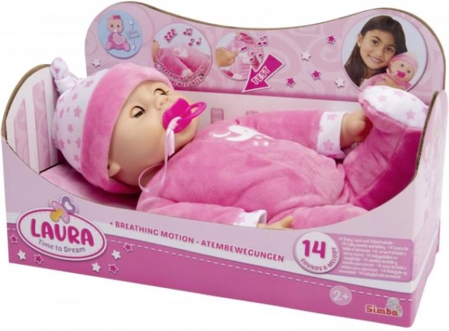Bonne nuit, petite Laura ! Après une journée pleine de jeux, la poupée est prête à dormir – elle respire doucement, son ventre se soulève et s’abaisse et, une fois allongée, elle ferme les yeux. Avec son corps souple et son expression adorable, elle est parfaite pour les câlins et le jeu imaginatif.