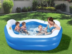 La piscine familiale gonflable Bestway est une excellente solution pour le divertissement familial dans le jardin. Elle est conçue pour être installée facilement et offrir un maximum de confort à tous les membres de la famille. La piscine dispose de deux chambres à air séparées en forme d'anneaux, garantissant une meilleure stabilité et empêchant les fuites d'air.