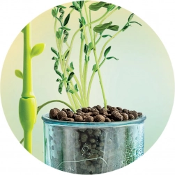 Contient un récipient, un support, une pipette, une petite pelle, des graines, des billes d’argile expansée et un support – tout ce qu’il faut pour les premières expériences de culture hors-sol.