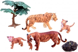 Le set comprend une famille complète de tigres et des accessoires pour créer des scènes : tigre, tigresse, 2 petits, arbre et rocher. Un cadeau idéal pour les jeunes amoureux des animaux et les collectionneurs, qui encourage l’apprentissage par le jeu – les enfants découvrent comment vivent les tigres et à quoi ressemble leur environnement naturel.