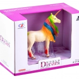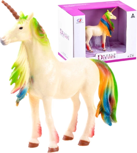 Sa crinière et sa queue aux tons arc‑en‑ciel lui donnent une allure féérique et incitent aussi bien au jeu qu’à l’exposition sur une étagère.