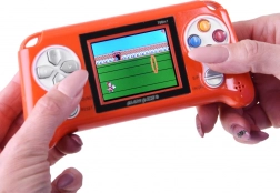 Cette console de poche ravira les amateurs de titres rétro et d’arcade. Elle propose un mélange soigneusement sélectionné de jeux : logiques, sport, courses, shooters, combat, d’adresse et plateformers classiques. L’écran LCD lumineux assure une image lisible aux couleurs vives, tandis que la disposition ergonomique des boutons permet un contrôle confortable et précis.