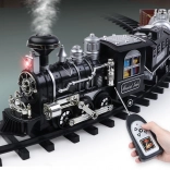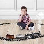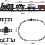 L'ensemble comprend une locomotive à vapeur, des wagons, des rails, une télécommande, un distributeur et un tournevis. Fonctionne avec 6 piles AA (non incluses)