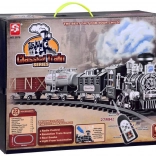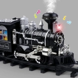 Ce remarquable modèle de train est équipé d'une télécommande et offre une conduite spectaculaire en avant et en arrière. La locomotive s'illumine et émet de la fumée par la cheminée, ce qui ajoute à l'authenticité du trajet. Les effets sonores simulent des bruits de train réalistes comme le sifflement, le cliquetis des roues sur les rails et la cloche. Le modèle est un cadeau idéal pour tous les passionnés de trains.