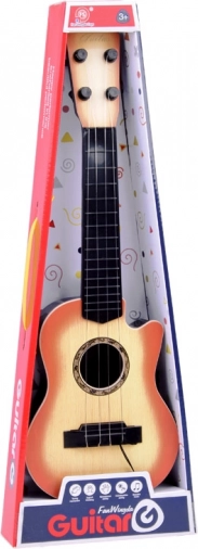 Légère guitare pour enfant avec quatre cordes métalliques et médiator inclus, idéale pour les premiers pas musicaux. Elle offre des dimensions compactes pour les petites mains, une possibilité d’accordage de base sur le manche et un look imitation bois. Elle favorise le développement du sens du rythme, de l’oreille et de la motricité fine, et motive les enfants à créer leurs propres mélodies. Inclus: médiator et conception résistante adaptée à un jeu quotidien.