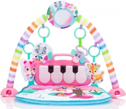 - Tapis moelleux lavable, arche avec 4 jouets suspendus et miroir, support pour arche et piano, piano interactif lumineux