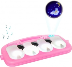 - Mélodies joyeuses et effets lumineux dans les touches ; changement de mode sonore (touches / mélodies) ; bouton note pour mélodies apaisantes