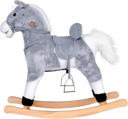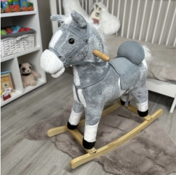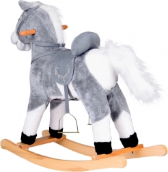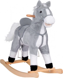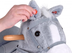 Cheval à bascule en peluche avec sons, queue et bouche mobiles – gris