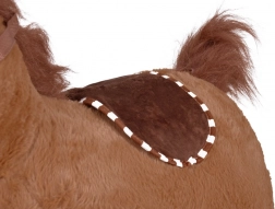 Sa housse douillette avec selle, bride et crinière fournie fait de ce cheval un compagnon de jeu et de câlins très apprécié.