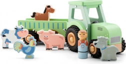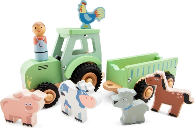Ce tracteur en bois de qualité avec remorque et ensemble d’animaux offre aux enfants de véritables expériences de vie à la campagne. Grâce aux roues fonctionnelles et à la remorque détachable, les petits fermiers peuvent transporter facilement les animaux et créer leurs propres histoires de ferme.