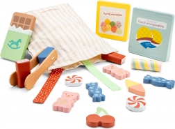 Adorable set de douceurs en bois pour enfants dès 3 ans, offrant un jeu sûr et créatif. Comprend 16 friandises, une petite pince et un sac en tissu. Favorise la motricité fine, l’imagination et les compétences sociales. Fabriqué en bois 100 % certifié FSC pour une longue durée de vie et le respect de la nature.