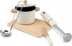 Ce kit de qualité offre aux petits chefs une expérience de cuisine réaliste – de la découpe des ingrédients au mixage de la soupe directement dans la casserole. Tous les composants sont conçus pour les petites mains et un jeu en toute sécurité, en combinant bois certifié FSC, métal et textile pour une grande résistance et un rendu authentique.