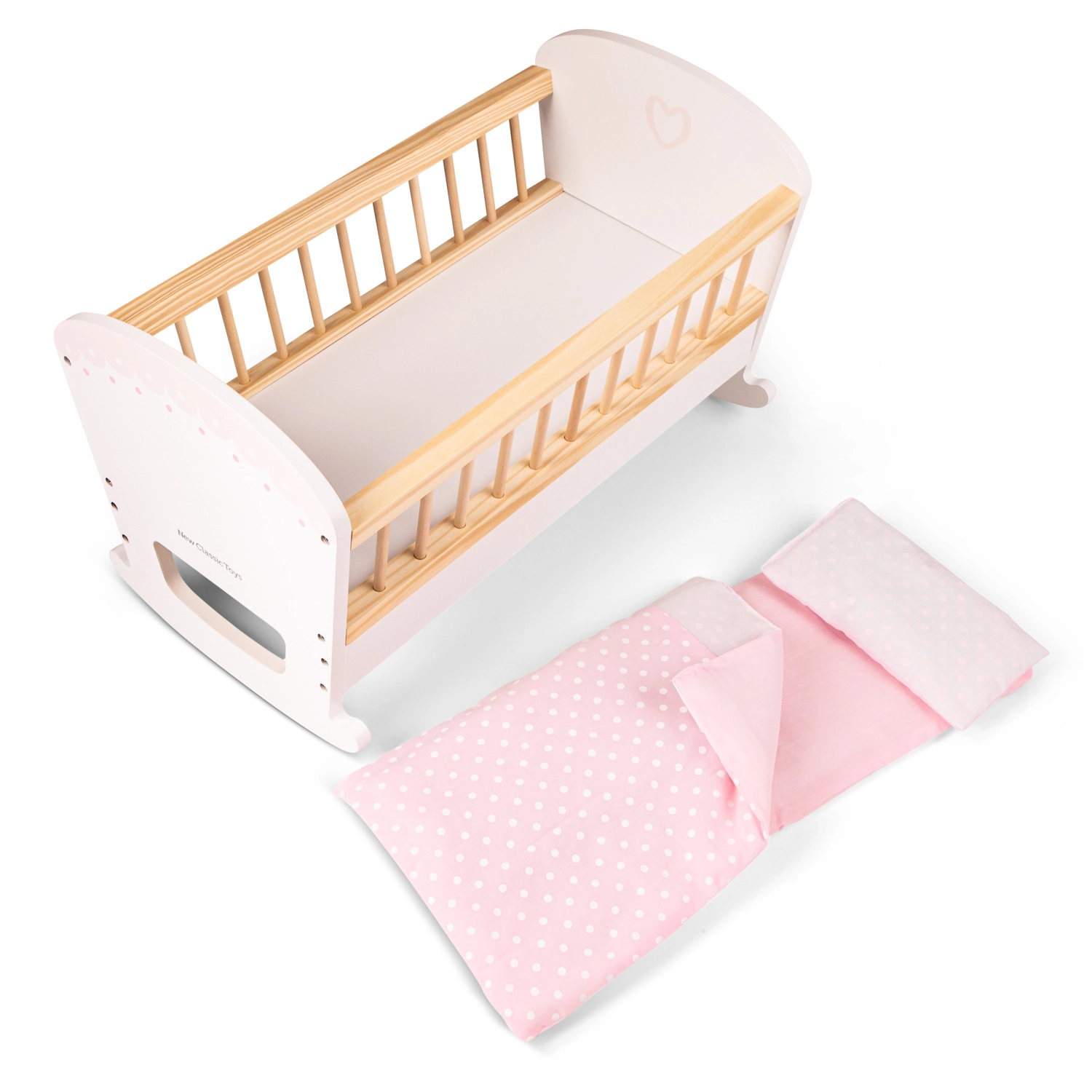 Ce berceau en bois crée un espace idéal pour jouer au parent attentionné. Grâce au matelas, à la couette et au petit oreiller inclus, les poupées seront toujours au chaud et à l’aise, tandis que le bercement doux aide à « endormir » les jouets préférés. L’élégante combinaison de bois naturel et de blanc s’intègre à toute chambre d’enfant.
