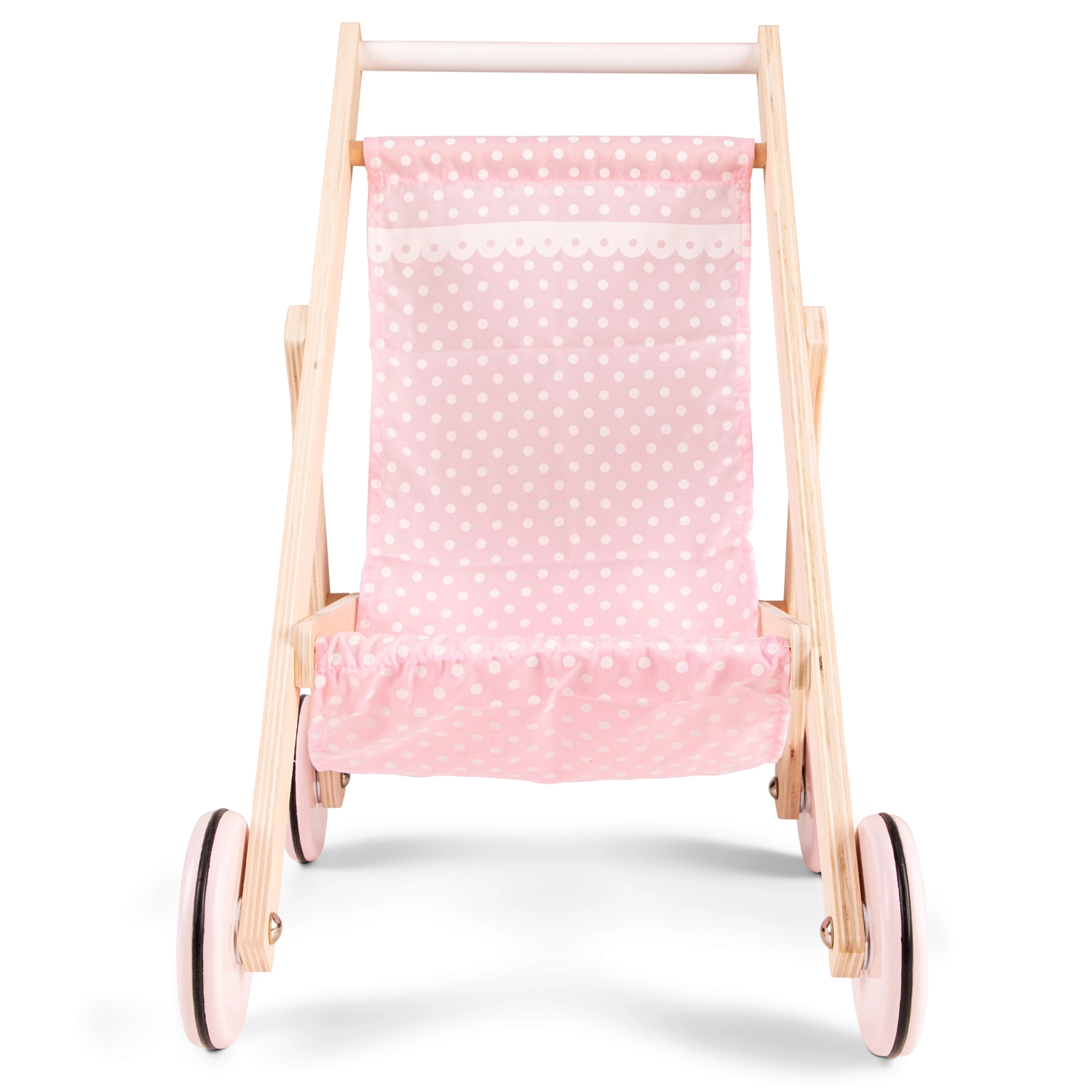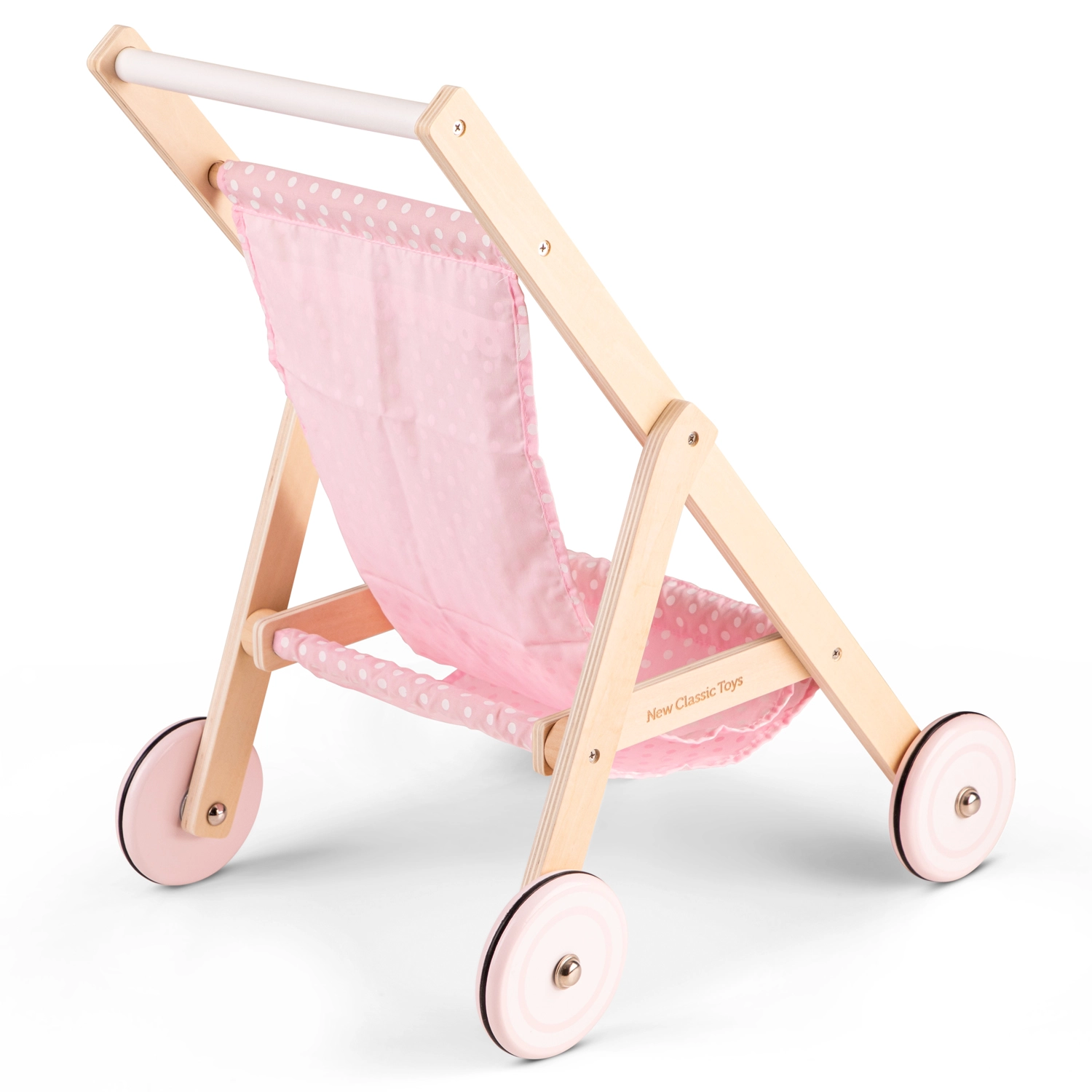 Cette poussette en bois stylée allie la résistance d’un matériau naturel à de délicats détails textiles roses. Elle est stable, facile à manœuvrer et, grâce aux anneaux en caoutchouc sur les roues, son déplacement est très silencieux – idéale pour l’appartement et la chambre d’enfant. La hauteur de poignée de 50 cm assure une poussée confortable pour les enfants d’âge préscolaire.