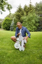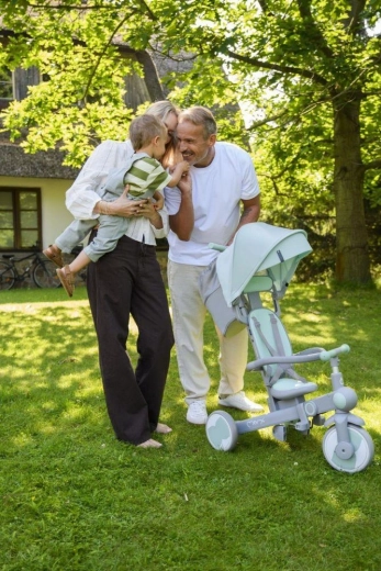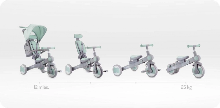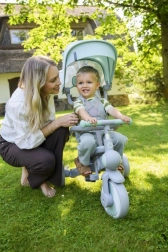 Tricycle à chevaucher. Après avoir retiré la draisienne, les pédales, le dossier et la poignée de poussée, vous obtenez un tricycle ride-on. Les roues arrière largement écartées offrent à l’enfant un véhicule sûr et stable pour développer ses compétences motrices.