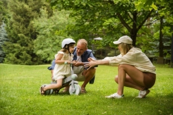 Tricycle avec pédales – Cette version offre davantage d’autonomie. Ses éléments soigneusement conçus, tels que les harnais de sécurité 5 points, le siège et le guidon réglables, assurent confort et sécurité.