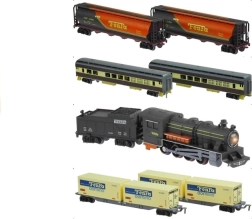 - Contenu de l’emballage : locomotive, 6 wagons, env. 10 m de rails, 4 arbres