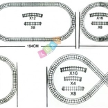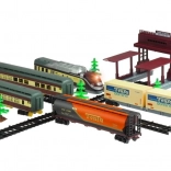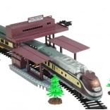 - Coffret riche : locomotive, 4 wagons, arbres, rails et embranchements