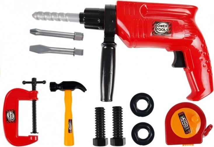Le set contient tout le nécessaire pour un jeu imaginatif : une perceuse avec foret rotatif, un marteau, un étau, un ruban à mesurer, des vis, des rondelles, des forets interchangeables et des plaquettes. Les enfants entraînent leur habileté manuelle, leur coordination œil–main ainsi que le travail d’équipe.