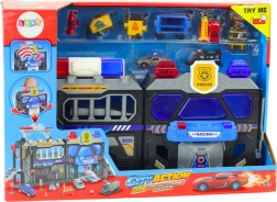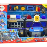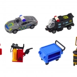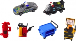 L'ensemble inclut des miniatures de petites voitures et divers accessoires pour des jeux réalistes de secours et contrôle de véhicules.