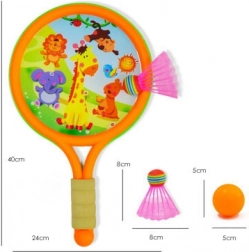 .Les raquettes de badminton vertes et orange dynamisent le jeu, tandis que le motif de dinosaures leur confère un caractère sympathique qui séduira assurément les plus petits.