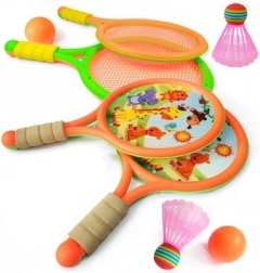 L’ensemble comprend non seulement des raquettes, mais aussi une balle et des volants, ce qui permet différentes formes de jeu et d’entraînement. Les enfants peuvent expérimenter diverses techniques de jeu et améliorer leurs compétences au rythme du jeu.
