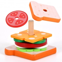 Ce set en bois coloré permet aux enfants d’assembler leurs propres « sandwichs » selon leur imagination ou d’après les cartes de commande fournies. Grâce à des instructions visuelles simples, les enfants reproduisent facilement les recettes, apprennent à distinguer les couleurs et les formes et s’exercent au plan pas à pas.
