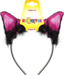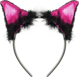 Accessoire de carnaval avec oreilles de chat en couleur rose-noir et plumes est l'accessoire idéal pour tout costume de chat.