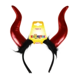 Cornes de diable maxi infernales sur serre‑tête avec plume douce, l’accessoire idéal pour parfaire un costume de diable.