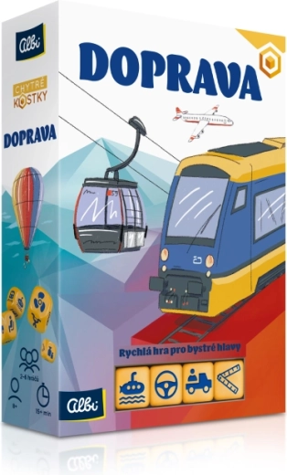 Parviendrez-vous à relier le plus grand nombre de symboles à un moyen de transport parmi les cartes révélées ? Le jeu contient : 4 dés colorés avec des icônes, 60 cartes de moyens de transport, 54 jetons de victoire et une règle du jeu.