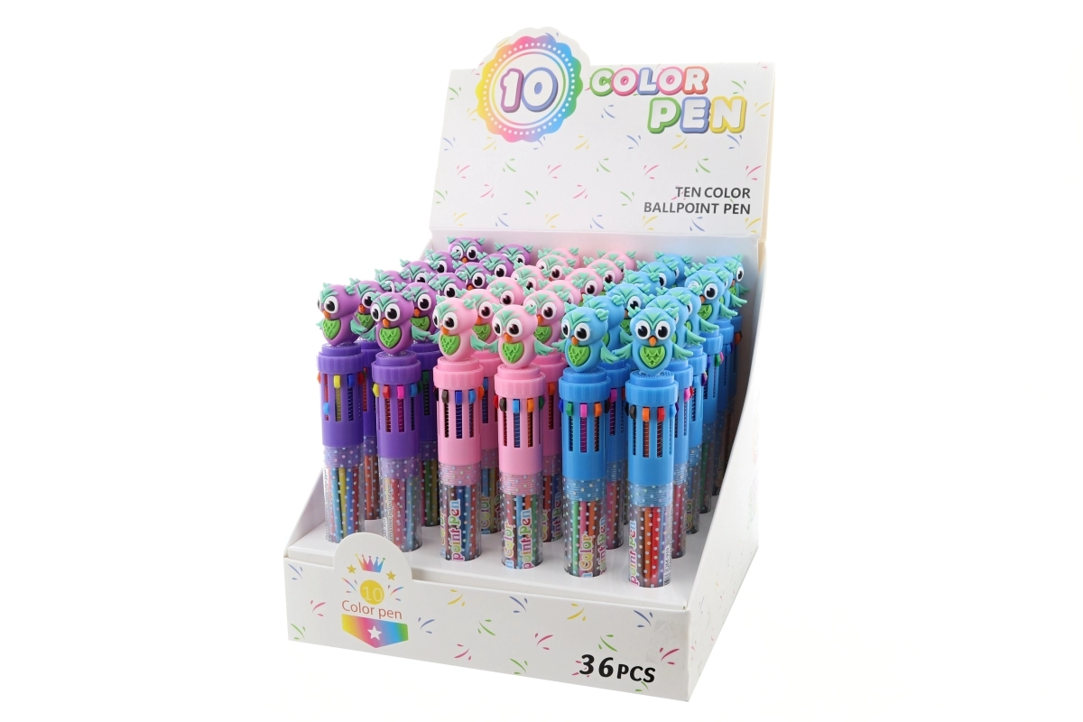 Stylo 10 couleurs avec motif de petits hiboux. Taille du stylo env. 12,5 cm (avec le hibou env. 15 cm). Ce produit n’est pas un jouet.