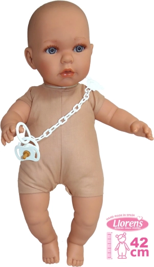 Cette poupée est fabriquée à la main en Espagne et son corps en tissu doux offre une sensation agréable pendant le jeu. On peut jouer avec la poupée en version fille ou garçon, grâce à la possibilité d’acheter des vêtements de la gamme Llorens pour la taille 42 cm.